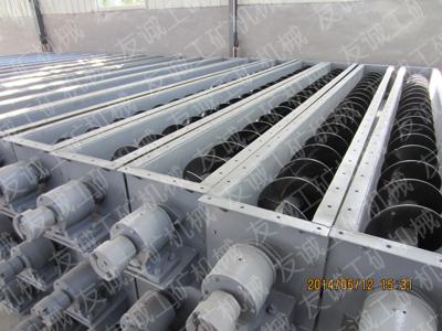 在頭節(jié)內(nèi)裝有支推軸承承受軸向力,在中間節(jié)和尾節(jié)內(nèi)裝有用軸承支承螺旋軸,此外,在尾節(jié)內(nèi)還裝有可軸向移動(dòng)的徑向軸承以補(bǔ)償螺旋軸長(zhǎng)度的誤差和適應(yīng)溫度的變化。螺旋面的形式有實(shí)體螺旋(S制法)和帶式螺旋(D制法)兩種。各螺旋軸之間采用法蘭式聯(lián)接, 了聯(lián)接軸的互換性,便于維修。